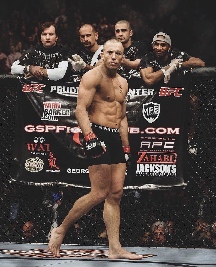 My favorite fighter growing up, Georges St. Pierre, with John Danaher (top left) in his corner.